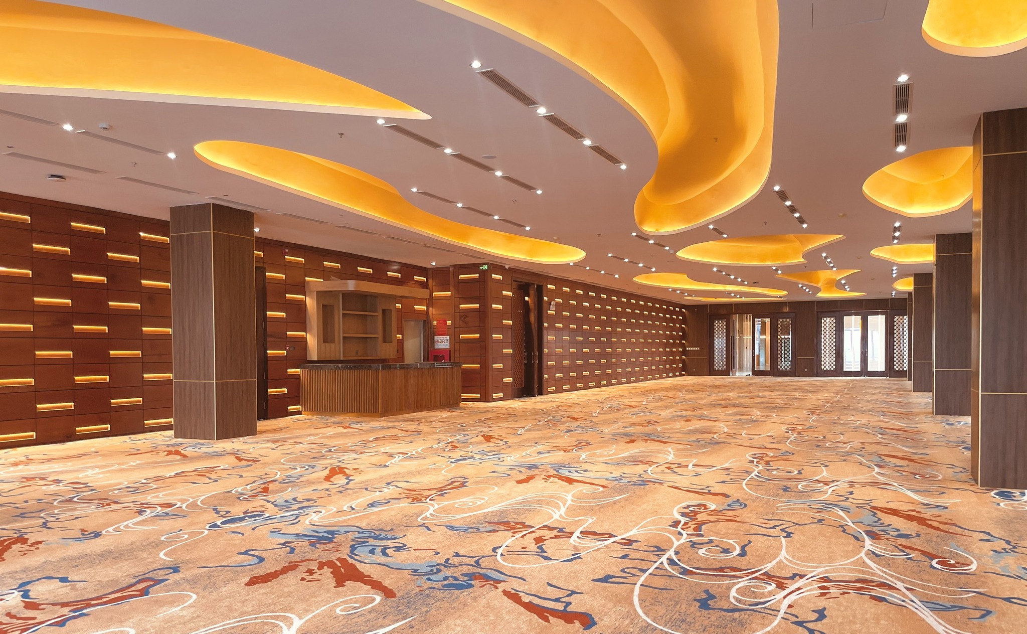 The crowning feature of our design is the ceiling, inspired by the natural elegance of sea caves. This element is not merely for aesthetics; it’s a critical part of our overarching design narrative, extending the oceanic theme from our All Day Dining area to create a cohesive and immersive experience. The ceiling lights, designed to replicate the soft, uneven glow of sunlight through water, bathe the space in an ambiance that’s both inviting and transformative, evoking the calm and mystery of the sea’s embrace.